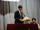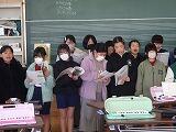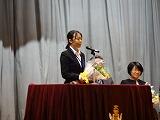 式の後では、PTA本部役員の皆様から、役員として校長と主幹教諭へ花束と記念品をいただき、ありがとうございました。
