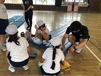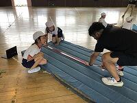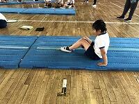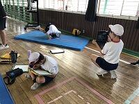 1ツ星担任の先生が、マットにテープで目印をつけたり、隣に並んで姿勢やお尻をつく位置を確認したりして、分かりやすく指導していました会議・研修