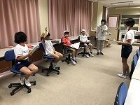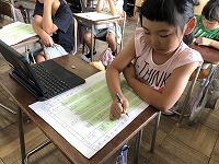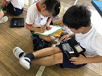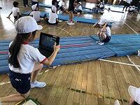 1ツ星子どもたちは、チームごとに、友達の演技をタブレットで録画し視聴覚すぐに見て確認して、アドバイスをワークシートにメモしていました鉛筆自分の演技を見た子は、「へぇ、私って、脚を広げちゃうんだ~」と、客観的に捉えることができていました了解