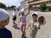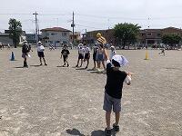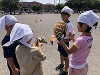 体育・スポーツグローブをはめたこともない子が多いので、ボールをキャッチするのは難しいようですひらめき1・2年生は下から投げたそうですが、3・4年生は上から投げるルールにしているそうで・・・投げる係の6年生が、優しくそうっと投げるなど、工夫してくれていました花丸