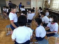 1ツ星「中間リフレクション」として、伝え方や聞き方について、振り返りの話合いをして、後半のやり取りに活かすという手法を工夫しました。子どもたちからは「ゆっくり話すとよい」「大きな声で」「アイコンタクトが大切」など、コミュニケーションの際のポイントが出されましたひらめき