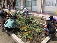 みどり委員会の皆さんが、校舎前の花壇をきれいにしてくれています花丸