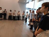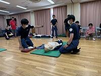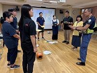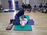 最後に、「心肺蘇生法」のやり方を体験する予定でしたが、時間の関係で、署員の方々の模範動作を見せていただくことに変更しました。