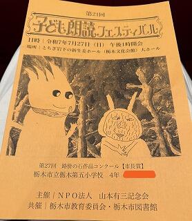 7月27日(日)の午後、「第21回 子ども朗読フェスティバル」本選が、とちぎ岩下の新生姜ホールで開催されました花丸
