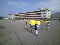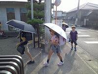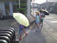 まだまだ暑い日が続いていますね晴れ子どもたちは、日傘をさしたり、タオルで汗を拭きながら歩いたりして、工夫していますピース歩いている途中でも、みんなで止まって、水分補給をするなどして、熱中症にならないように気を付けて登下校しましょうね注意
