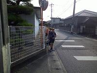 注意 正門から登校中