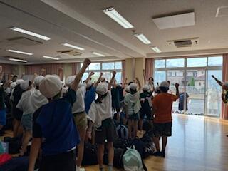 体育館が、工事中のため利用できないので、校庭で短時間で活動したり、多目的室に集まって動きの確認をしたり、上手に時間と場所を使い分けて取り組み始めましたよキラキラ