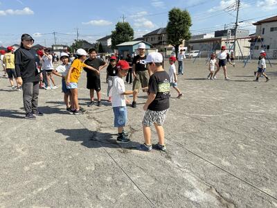 体育館が、工事中のため利用できないので、校庭で短時間で活動したり、多目的室に集まって動きの確認をしたり、上手に時間と場所を使い分けて取り組み始めましたよ