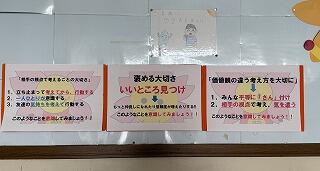 先週の「いじめ防止オンライン集会」で代表児童が全校に呼び掛けてくれたシートを、西と東の昇降口に掲示してくれました