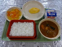 ごはん 牛乳 なつやさいカレー オムレツ レモンのジュレポンチ