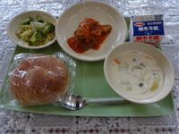 こめこパン ぎゅうにゅう ちゃんぽんめん チキンナゲット くきわかめサラダ