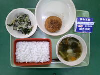 【栃木農業高校コラボメニュー】ごはん ぎゅうにゅう メンチカツ いそかあえ じゃがいもとわかめのみそしる
