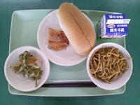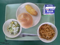 ミニせわりコッペパン ぎゅうにゅう やきそば とりにくのてりやき だいこんとくきわかめのサラダ