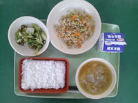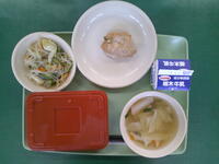 ごはん ぎゅうにゅう とりにくのしせんふうやき バンサンスー ワンタンスープ