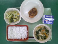 ごはん ぎゅうにゅう さけフライ ゆでやさいサラダ ほうれんそうのかきたまじる