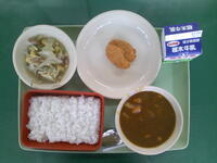 今日は、栃木農業高校の生徒のみなさんが育ててくれたぶた肉を使った料理「かりんあげ」です。ぶた肉は、私たちの体を作る働きがあります。おいしいぶた肉を作ってくれた高校生のみなさんに感謝していただきましょう。しっかり食べて、元気な体を作りましょう。
