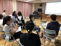 講師の先生も、席の間に入って話合いに加わってくださったり、アドバイスしてくださったりして、終始とても和やかな雰囲気の研修会となりました