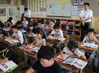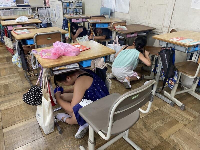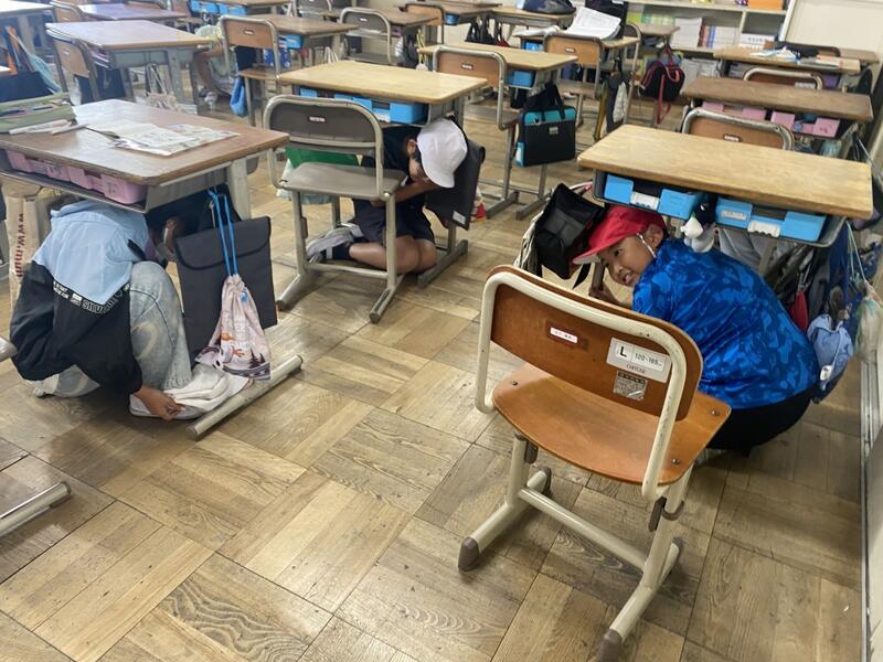 校内の児童は揺れが収まった後、落ち着いて机の下から出て避難経路を確認し避難しました。