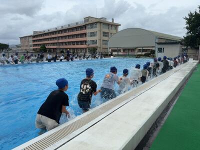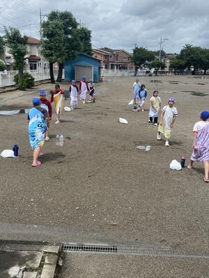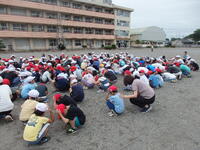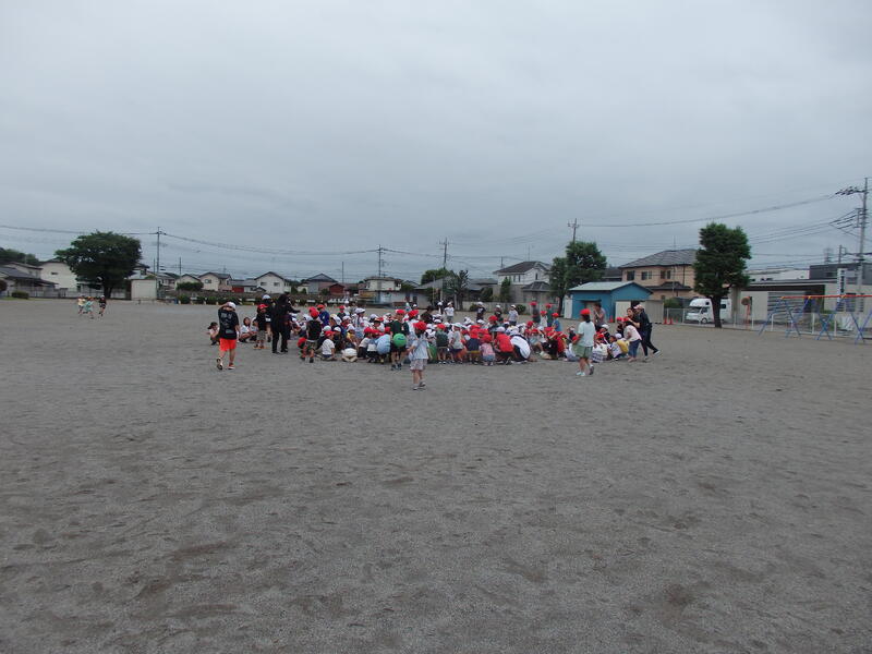 その後、給食室からの火災発生を想定して校庭へ移動しました注意