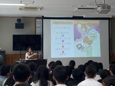 紹介動画が流れると、「昇降口に掲示されている人だ!」や「前に大北にいらっしゃった先生だ!」のような児童の反応がありました!