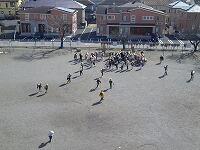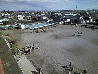 6年生が体育館で練習する間、1年生から4年生も、各教室での練習を経て、校庭で全体練習を行っています