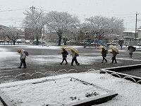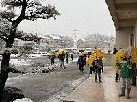 先月は、「少しでも雪を触りたい」「雪で遊びたい」という気持ちがあふれていましたが・・・今日の雪は、水分をたっぷり含んでいて、びちゃっとしていたせいか、子どもたちは「雪遊びをしよう」というよりも「急に寒くなってびっくり」「足が濡れて冷たい」という感じで、学校に到着したようでした
