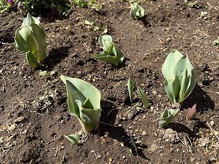 花壇のチュウリップの芽が出てきました