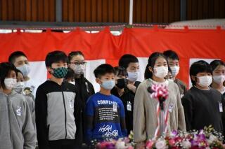 1年生、大満足で6年生と一緒に退場 やっぱりみんな一緒が楽しいです!