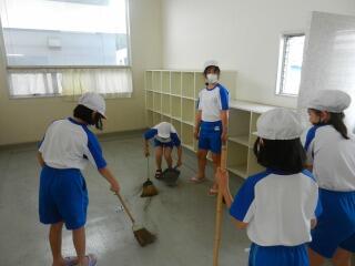 5・6年生と職員によるプール清掃を行いました。1年間眠っていたプールの底には、汚れがいっぱい。たくさんのヤゴの住みかにもなっていたようです。子どもたちと職員で清掃し、見違えるほどきれいになりました。職員による点検も行い、安全にプールでの活動が楽しめそうです。5・6年生のみなさん、ありがとうございました。