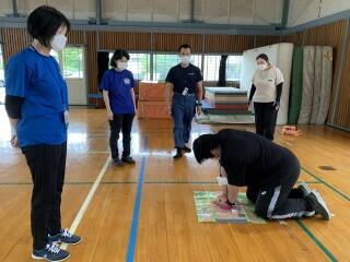 プール開きを間近に控え、万が一に備えての救急法「心肺蘇生法」の研修を行いました。栃木消防署大平分署の職員の皆様6名に御来校いただき、知新館ホールと体育館に分かれて研修をしました。人形や模型を使って、実際に自分たちで心肺蘇生法やAEDの操作を行い、子供たちの命を守るための訓練に全職員が真剣に取り組みました。グループに分かれて行いましたが、どの班からも、様々な質問が出ていました。大平分署の皆様には、救急法をご指導いただき、職員の疑問にお答えいただき、ありがとうございました。職員は、その後、養護教諭によるアレルギー研修を行いました。子供たちの命を守るために、今後も努めて参ります。