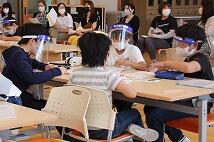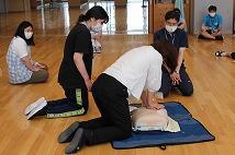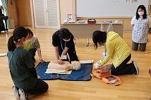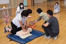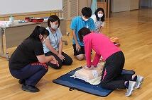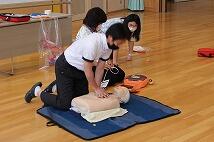 いよいよ水泳指導のシーズンが近づき、今日は養護教諭と保健主事を講師として職員の心肺蘇生法講習会を開きました。講師の説明を聞いた後、実際に胸骨圧迫やAEDの使い方を体験しました。毎年実習していますが、1年経っていざ自分で体験すると戸惑ったり迷ったりしてしまいます。事故が起こらないに越したことはありませんが、もしもに備える良い機会となりました。