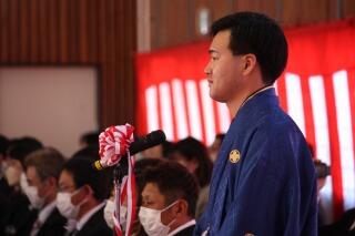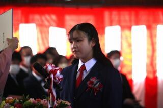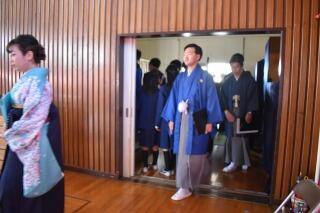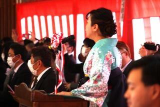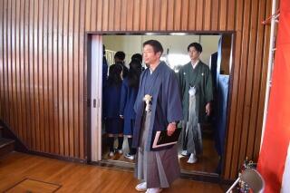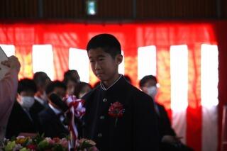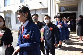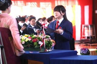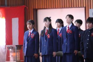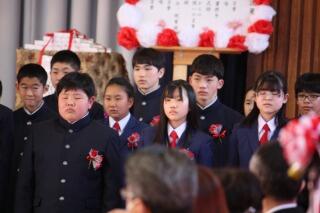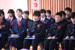 <学校長式辞・来賓祝辞を聞く卒業生>
