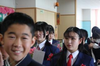 卒業式を明日に控え、会場の都合で参加できない1から3年生は、下校前に6年生とのお別れ会を実施しました。3年生がリーダーとなり進行する会は初めてです。6年生を拍手で迎え、優しくしてもらったこと、一緒に遊んでくれたこと、みんなのために働いてくれたことなどへのお礼の言葉をみんなで伝えました。6年生の顔を見て、ありがとうの気持ちをしっかり伝えました。6年生からもメッセージをもらい、嬉しい気持ちになった1から3年生、教えてもらったことを忘れずに、小学校で頑張ってくれることと思います。6年生のみなさん、中学校でも頑張ってください!