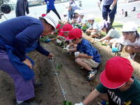ボランティアのみなさんに優しく丁寧に教えていただき、楽しく、たくさんの苗を植えることができました。