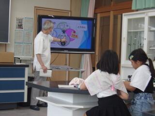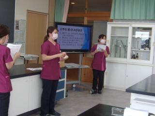 本校学校歯科医の清水先生と6名の衛生士さんに御来校いただき、3年生児童にむし歯ができる訳や予防方法、きれいな歯の磨き方のご指導をいただきました。お話を伺ったあと、カラーテスターを使って染め出しをし、給食後の歯磨きでの磨き残しをチェック。衛生士さんに歯磨きの方法をご指導いただきながら、丁寧に歯を磨きました。体の健康に歯と口の健康が深く関わっていることも学んだ子どもたち。教えていただいたことを生かして、毎日きれいに歯磨きができるよう頑張ってほしいと思います。清水先生、清水歯科衛生士の皆様、お忙しい中ご指導いただき、ありがとうございました。