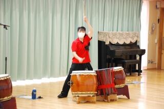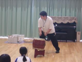 創作和太鼓『来舞・デュオ』のお二人に御来校いただき、4年生に和太鼓のご指導をいただきました。和太鼓のつくりにについてのお話やお二人の力強い素晴らし演奏に魅了され、子どもたちは興味津々。両手にバチを持ち、真剣な表情で和太鼓をたたいていました。分かりやすく丁寧にご指導いただき、繰り返し練習する中で、表情が和らぎ、和太鼓の音の響きやリズムを楽しめるようになりました。体の芯に響き渡る和太鼓の音。日本の伝統文化に触れることができた有意義な体験となりました。