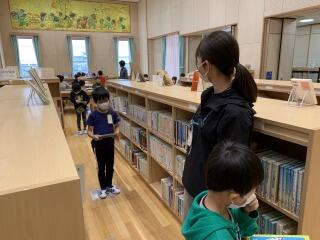 入学して約3週間。1年生も給食や昼休みもはじまり、小学校生活に慣れてきました。今日は、図書の本の借り方を学び、入学して初めて学校の本を借りました。担任の先生と図書の先生のお話をよく聞いて、本の借り方や図書室を使うときの約束を学習しました。今日は絵本を1冊借りました。短時間で読みたい本を選び、きちんと並んで図書の先生に貸し出しの処理をしてもらうことができていました。自分の読みたい本を手に取った子供たちは、とてもうれしそうでした。いわむらかずお先生の大きな絵が掲げられた、本校の自慢の図書室。明るく温かな雰囲気の図書室をどんどん利用し、たくさんの本とふれ合ってほしいと思います。
