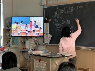 DVDを活用しての授業:子供たちは真剣に視聴し、よく考えて話し合っていました。