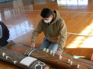 20日(火)6年生、21日(水)5年生のお琴体験教室を実施しました。馬場千年先生と成田信人先生に、ご指導をいただき、楽器についてや演奏の仕方を学びました。6年生は昨年度に引き続き、2回目となり、昨年教えていただいたことを思い出しながら、楽しそうに「さくら さくら」を演奏していました。さすが6年生、1時間が終わる頃には、みんなで一緒に上手に演奏ができるようになりました。5年生は初めての体験。正座や弦のはじき方に苦戦しながらも、楽譜を見ながら弦をはじき、曲になっていく楽しさを味わうことができました。先生方の「春の海」の演奏を拝聴し、優雅な気分を味わうと共に、伝統楽器の素晴らしさを感じることができました。馬場先生、成田先生、ご指導ありがとうございました。
