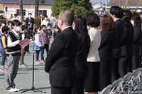 今日は離任式を行い、10名の先生方とお別れしました。教頭先生から転退職される先生方の紹介があった後、児童代表の石塚さんから心温まるお別れの言葉、花束贈呈の後、お一人お一人からお別れのご挨拶をいただきました。