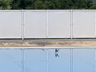 子供たちがいない隙を狙ってプールを楽しんでいるのは・・・ツバメさんやセグロセキレイでした。
