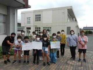 あいさつ当番の子供たちと役員さん。2学期もみんなであいさつ運動を盛り上げましょう!