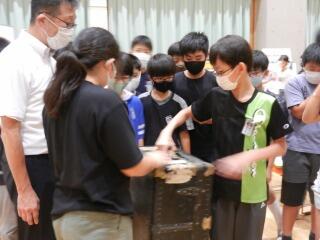 実際に持ってみると、その重さが実感できました。みんなで交代で体験。