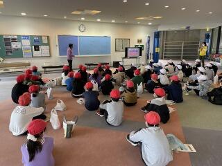 入所式:自然の家での過ごし方を学びました。よくお話が聞けていそうです。