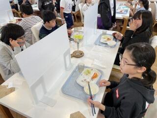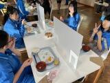 自然の家での初めての食事。室内になりましたが、みんな笑顔です。