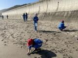 砂浜活動:砂の造形と貝殻拾い  青空の下、自然を満喫しました。