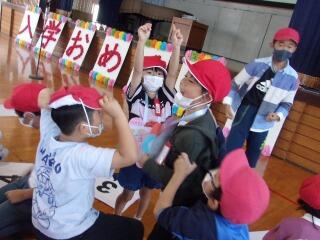 5月11日(木)に1年生を迎える会を行いました。4年ぶりに全校生が体育館に集合しての実施。「笑顔いっぱい 思い出いっぱい 感謝いっぱい~大平南小学校~」のスローガンのもと、1年生にプレゼントを贈り、にこにこグループ(1~6年生までの縦割り班)で自己紹介をしたり、クイズやゲームをしたりして、1年生はもちろん全校生で楽しむことができました。1年生を先頭にしたジャンケン列車では子供たちの楽しそうな歓声があちこちから聞かれました。スローガンとして目指した「笑顔いっぱい 思い出いっぱい」の素晴らしい会となりました。楽しそうに、みんなで仲良く活動している元気いっぱいの子供たちの姿に、先生たちは感動いっぱい。1年生を迎える会大成功です!