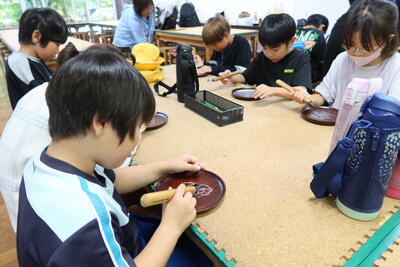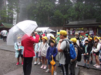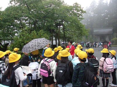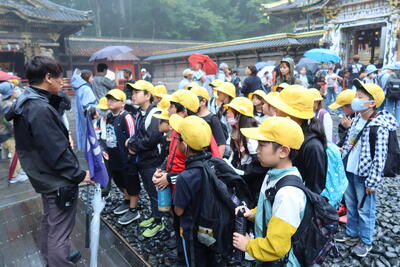 日光東照宮を見学し、日光彫りの体験をしました。日光の自然や歴史、伝統工芸などの文化に触れ、改めて郷土の素晴らしさを感じることができました。日光東照宮では、ガイドさんの話を興味深く聞き学習する様子や、日光彫りに挑戦する集中力、協力して活動する様子から、4年生の大きな成長を感じました。思い出に残る楽しい一日となりました。