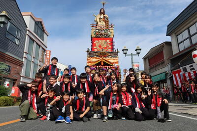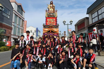 倭町二丁目の神武天皇の山車を「わっしょい!」の掛け声とともに力いっぱい引きました。初めての経験になった子も多く、迫力ある山車の様子に驚く姿も見られました。