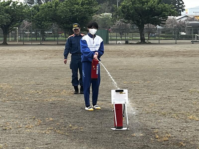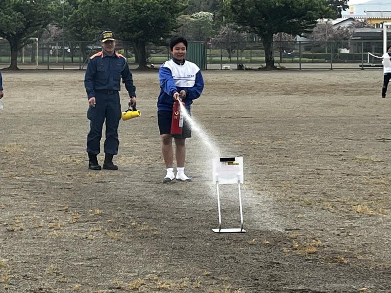 各学年の代表の方に消火器で、消化体験をしてもらいました。3年生は火が消しきれなかった場合として逃げる訓練も行いました。